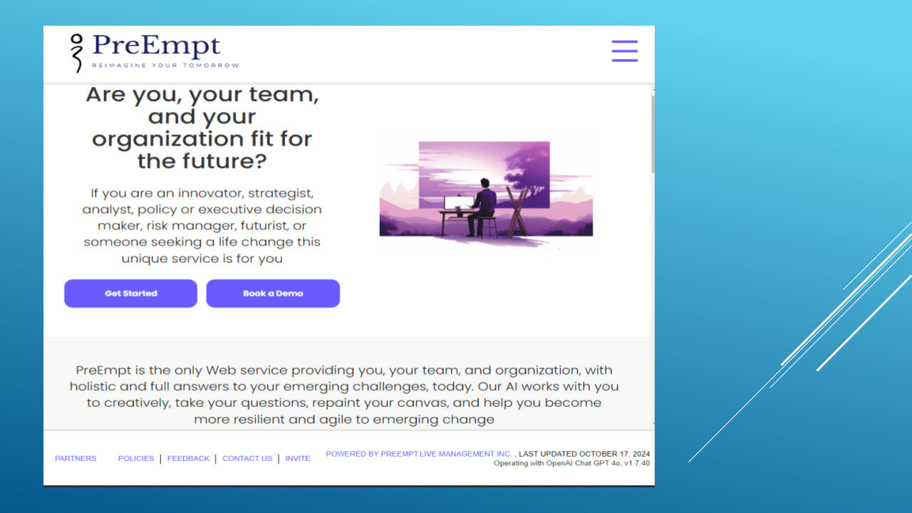 With PreEmpt.life, you’re not just building a website; you’re crafting an experience that resonates with your audience and elevates your brand’s presence in the digital world. Contact us today, to learn how to quickly establish, run and complete your project in with super smart, reimagined outcomes.